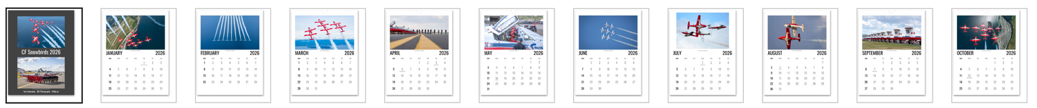 - 12 full-colour Snowbirds photos from recent seasons, one for each month of 2026.